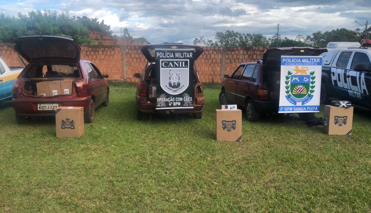 Policiais militares do distrito de Sanga Puitã e do Canil de Ponta Porã, apreenderam por volta das 5h10 desta quarta-feira (12), cigarros contrabandeados do Paraguai.
