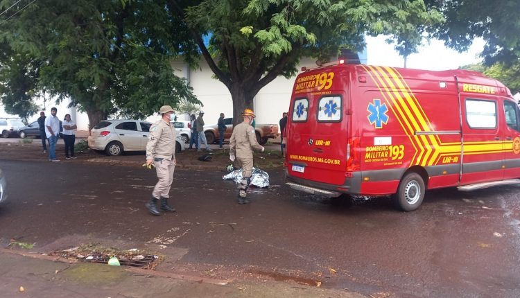 Acidente na manhã desta quinta-feira (31), envolvendo carro e moto, na rua Antônio Emílio de Figueiredo, em Dourados, resultou na morte de uma mulher ainda não identificada.