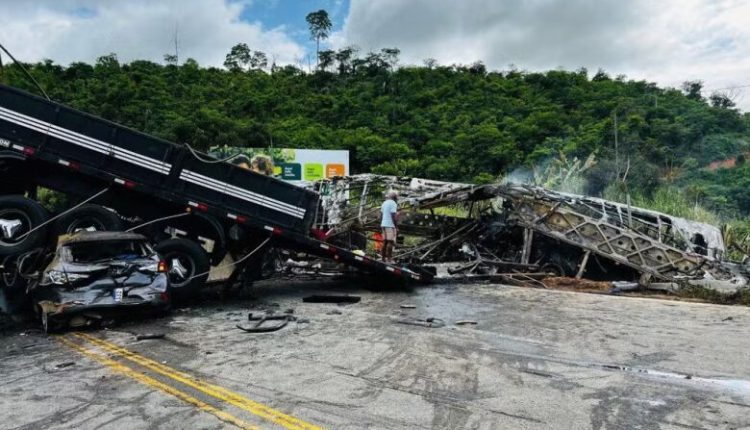 Ainda segundo o Corpo de Bombeiros, o pneu do ônibus estourou e o motorista perdeu o controle da direção, batendo contra uma carreta. Um carro que vinha atrás também colidiu com o ônibus. Com a colisão, o ônibus pegou fogo. O ônibus saiu de São Paulo na sexta (20) e tinha como destino Vitória da Conquista, na Bahia.