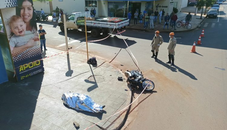 Acidente na manhã desta terça-feira (24), envolvendo uma moto Shineray e uma F4000, na avenida Marcelino Pires, região da Vila Cuiabá, em Dourados, matou uma pessoa e deixou outra gravemente ferida.