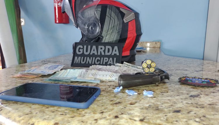 Durante a busca pessoal, foi encontrado um revólver calibre 38, com cinco munições intactas, R$ 3.825 em espécie, um aparelho celular Xiaomi e três porções de pedras de crack.