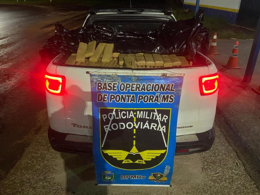 A apreensão ocorreu quando os policiais realizavam fiscalização na rodovia MS 164, em Ponta Porã, e deram ordem de parada ao veículo Fiat/Toro Volcano, placa de Guarulhos/SP.