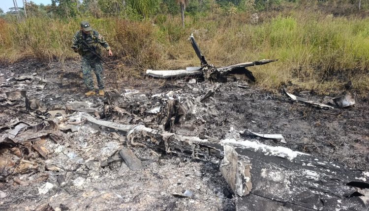 Na sequência, os protocolos de resposta foram ativados e um helicóptero do Comando de Operações de Defesa Interna decolou com uma equipe tática até o local. Ao chegar à área, os militares constataram que a aeronave estava totalmente incinerada. Também foram encontrados dois acampamentos improvisados, com vestígios de alimentos queimados e diversos galões de combustível, alguns vazios e outros ainda cheios.