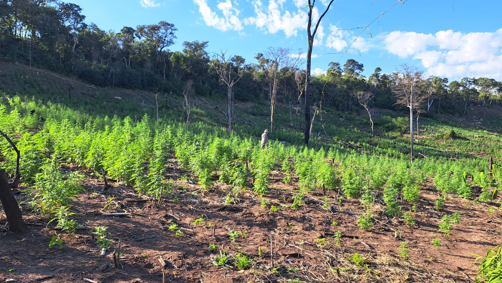 Além disso, os agentes erradicaram uma plantação de aproximadamente um hectare em estágio de crescimento e incineraram 720 quilos de skunk já processada.