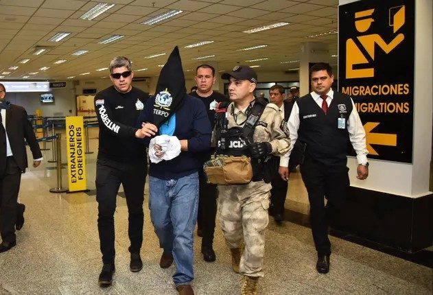 Miguel Ángel Insfrán, conhecido como ‘Tio Rico’, chegou ao Paraguai nesta sexta-feira (19), em voo comercial, após ser extraditado do Brasil. Ele é apontado em investigação da Senad (Secretaria Nacional Antidrogas) com líder de organização criminosa especializada em lavagem de dinheiro do tráfico internacional de cocaína.
