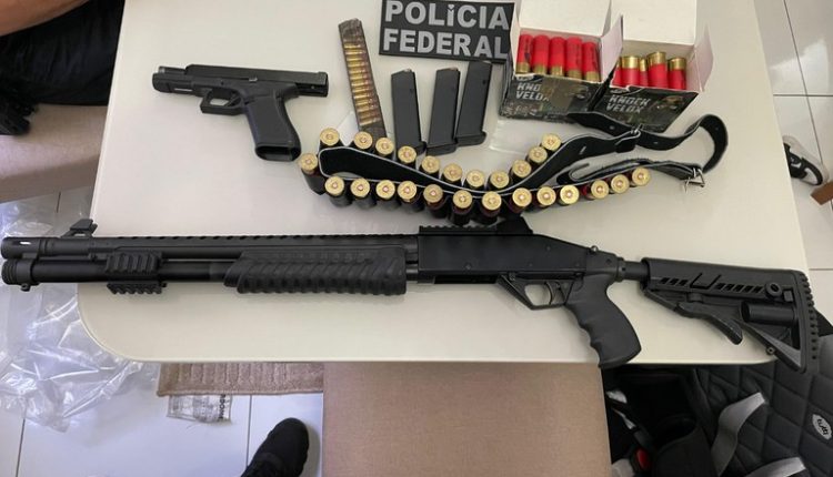 Durante as buscas na casa de um dos investigados foram apreendidas duas pistolas e uma arma longa calibre 12. O alvo da diligência está cadastrado nos sistemas da Polícia Federal como CAC (Colecionar Atirador e Caçador). Em que pese as armas serem registradas, essas estavam acondicionadas de forma irregular, o que resultou na apreensão.