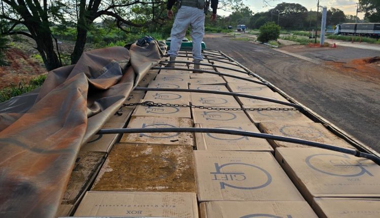 Os policiais encontraram 800 caixas de cigarro contrabandeado do Paraguai que somaram ao todo 40 mil pacotes do produto. A carreta e a carga foram encaminhadas para a Polícia Federal em Dourados.