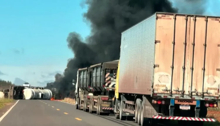 A Polícia Militar Rodoviária orienta os motoristas a evitarem a rodovia, já que o veículo tombado ocupa toda a pista, impedindo o tráfego nos dois sentidos.