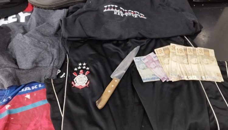 Inclusive, com o Marlon e com o menor, os policiais apreenderam a faca utilizada no crime, as roupas usadas por eles e ainda recuperou o dinheiro.