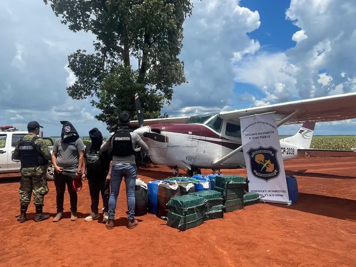 A aeronave e a prisão do peruano Elmer Enrique Figueroa Paredes de 50 anos e do boliviano Lúcio Alfonzo Paz Fernandez de 33 anos aconteceu em uma pista improvisada no distrito da Gleba 11, durante a Operação Falcão 2 da Unidade de Combate ao Narcotráfico da Polícia Nacional do Paraguai. Também foram apreendidos 11 galões de combustível de aviação e dois GPS.