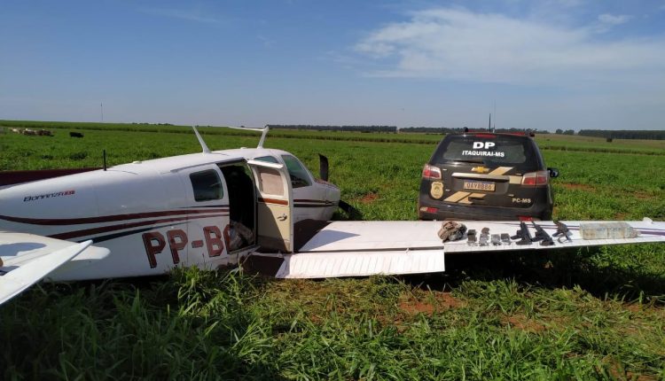 Um avião que estaria transportando armas e drogas fez um pouso forçado em uma propriedade rural em Itaquirai na manhã desta sexta-feira (27). Depois do incidente o piloto da aeronave deixou o local e se embrenhou em uma mata e está sendo procurado.
