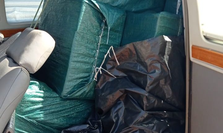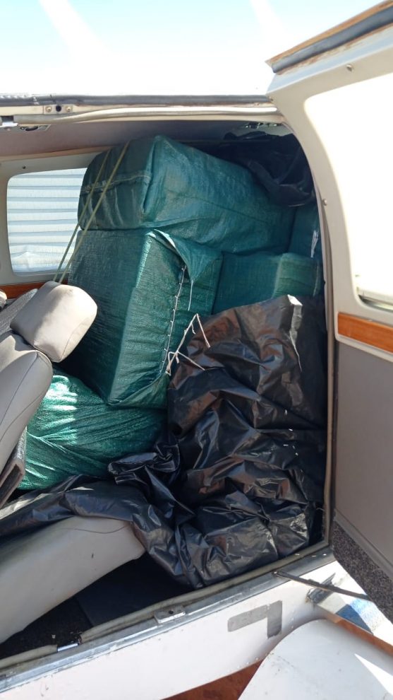A Polícia Federal ao vistoriar a aeronave localizou a grande quantidade de droga distribuída em fardos nos bancos e compartimento de bagagens da aeronave. A pesagem foi com concluída a noite revelando 673 quilos.