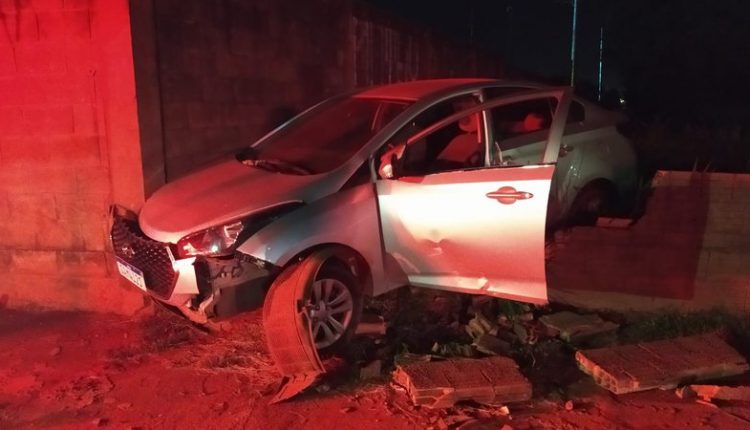 Os militares avistaram os utilitários, mas os bandidos fugiram. Os criminosos acabaram entrando em uma rua e um dos ladrões perdeu o controle do HB20, batendo na mureta da avenida.