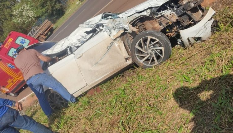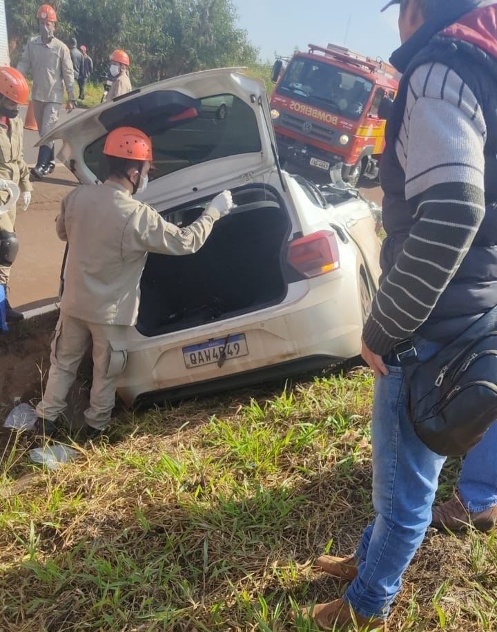 O acidente aconteceu na parte duplicada da BR 463 na chegada de Ponta Porã e o carro foi parar na vala de contenção entre as duas pistas. E o estado de saúde do motorista é desconhecido.