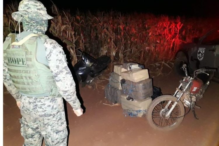 No fim de semana, equipe do Batalhão de Operações Policiais Especiais – BOPE, em policiamento na região rural de Amambai, nas proximidades do Rio Amambai perceberam duas motocicletas trafegando rumo a ponte. Diante da sinalização para que parassem, os condutores após manobra brusca fugiram por um milharal nas proximidades da estrada.
