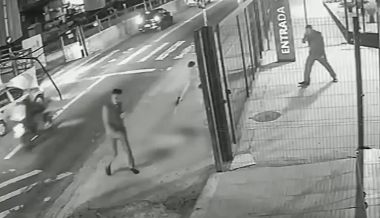 Em seguida, o homem se vira para o animal e faz vários disparos com um revólver. Ele fugiu do local.