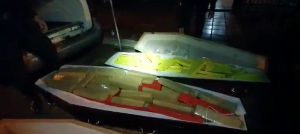 Como o agente funerário ficou muito nervoso os militares resolveram abrir os caixões e encontraram centenas de tabletes de maconha quem pesaram ao todo 284 quilos e 200 gramas da drogam que estavam sendo levados para Goiânia.