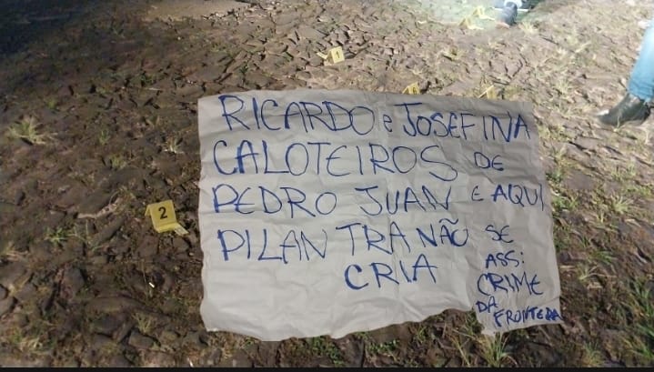 Ricardo e Josefina, caloteiros pilantras, não se cria. Ass. Crime da Fronteira”.