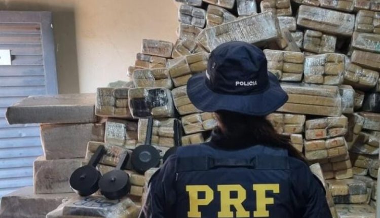 Os PRFs fizeram busca no veículo e encontraram um compartimento preparado no veículo, onde estava os tabletes de maconha, que pesaram 3,7 toneladas e os carregadores.