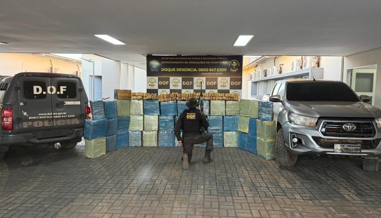 No interior da caminhonete foram encontrados diversos fardos e tabletes de maconha, que após a pesagem totalizaram 1.950 quilos. Em checagem, as placas afixadas no veículo, foi constatada que eram falsas e que o automóvel havia sido furtado em maio deste ano, na capital mato-grossense.