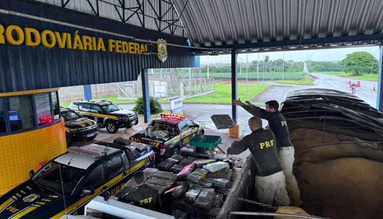Um carregamento de mais de oito toneladas de maconha foi apreendido pela Polícia Rodoviária Federal (PRF) na manhã de ontem na BR 163 em Guaíra (PR). A droga era transportada em meio a uma carga de farelo de milho que tinha sido carregada em Sidrolândia e o motorista de 41 anos, morador em Rio Claro (SP) foi preso em flagrante.