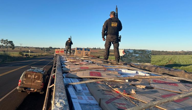 Policiais do DOF (Departamento de Operações de Fronteira) apreenderam uma carreta bitrem Mercedes-Benz prata carregadas com cigarros contrabandeados do Paraguai. A equipe do DOF realizava patrulhamento ostensivo e preventivo pela rodovia MS-299, zona rural de Japorã e da Linha Internacional, quando avistaram o momento em que o condutor da carreta abandonou o veículo e correu para uma mata às margens da rodovia.