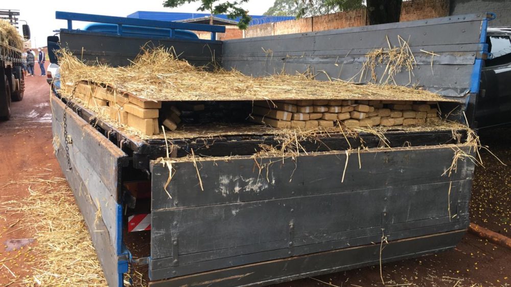 Logo depois o motorista de outro caminhão que transportava feno também foi abordado, mas ele não obedeceu a ordem da parada e tentou fugir. Ele foi perseguido e preso. O motorista de 22 anos, morador em Ponta Porã, estava com um caminhão com placas de Jardim Alegre (PR) e carrega em um compartimento falso sob os fardos de feno, 1,779 quilos de maconha.