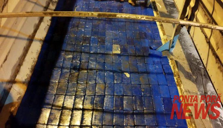Um carregamento de 440 quilos de cocaína foi apreendido na tarde desta terça-feira (3) no Anel Viário de Dourados pela Polícia Rodoviária Federal (PRF). A droga era transportada em um fundo falso de uma carreta carregada de calcário.