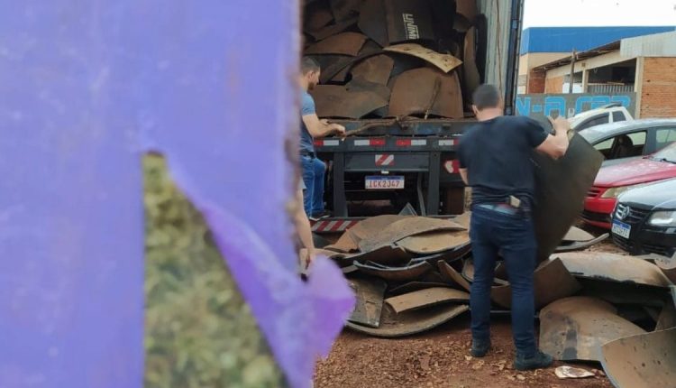Com isso, no começo da tarde desta sexta-feira (1º) equipe da DEFRON montou vigilância na BR 163, quando identificou uma carreta com as mesmas características das apuradas durante a investigação. Ao inspecionar o baú da carreta, que estava lacrado, os policiais encontraram embaixo do reciclável vários fardos de maconha que pesaram 395 quilos.