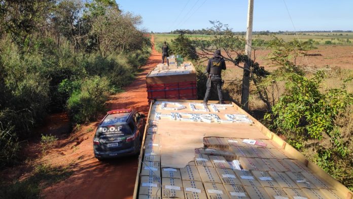 Policiais do Departamento de Operações da Fronteira (DOF) apreenderam na tarde deste domingo(21) no Assentamento Santa Rosa em Itaquiraí, duas carretas que transportavam mil caixas de cigarros contrabandeados do Paraguai.