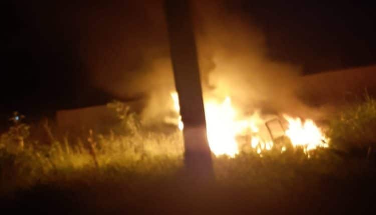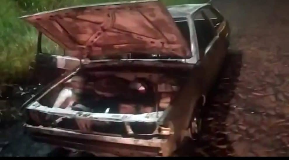 Populares acionaram a Guarda Municipal de Ponta Porã ao encontrarem um Gol com verde. placas HRF 0895 de Ponta Porã, em chamas na noite desta terça-feira (25), nas proximidades da Linha Internacional entre Pedro Juan Caballero e Ponta Porã.