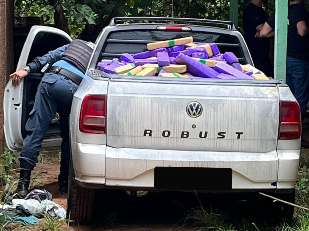 Na sequência a polícia apurou o endereço e o bairro onde o veículo encontrava-se escondido. Equipes foram para uma residência no Jardim Ivone, região Norte de Ponta Porã onde localizaram o veículo e a droga.