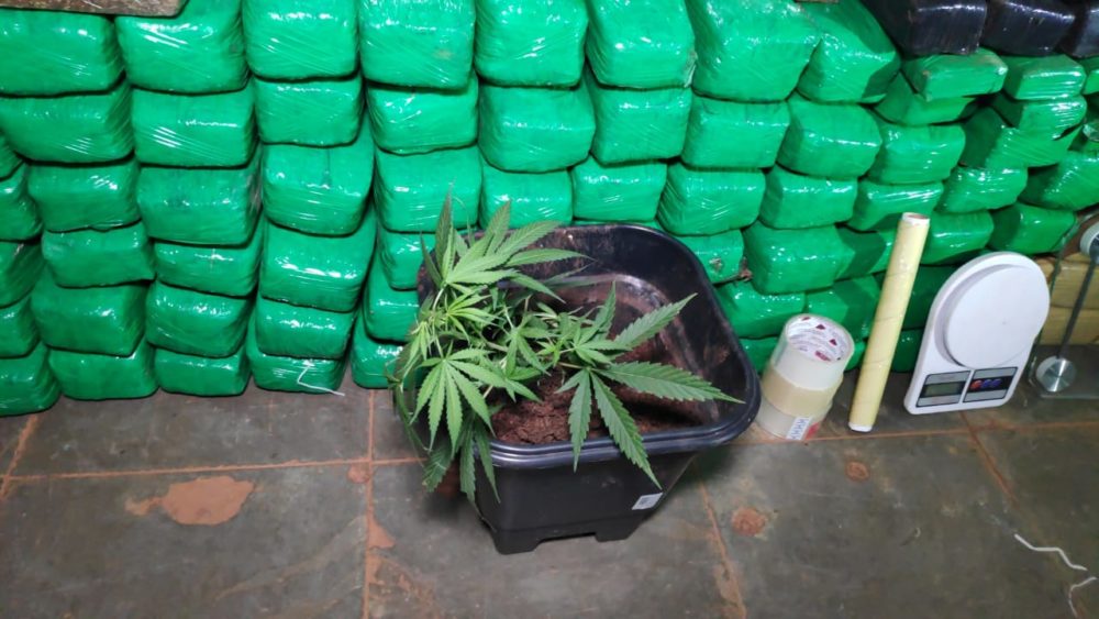 Policiais do Departamento de Operações de Fronteira (DOF) prenderam nesta segunda-feira (31) um casal acusado de tráfico de entorpecentes. Eles foram flagrados pelos militares durante um patrulhamento no Jardim Canaã 3 na periferia de Dourados. Em uma residência localizada na rua Z 5 foi encontrado um Vectra com 5 quilos de maconha no interior. Já no interior da casa em um dos cômodos havia centenas de tabletes do entorpecente que totalizaram 145 quilos da droga. Também foram encontrados dois quilos e 200 gramas de cocaína e até um pé de maconha cultivado em um balde.