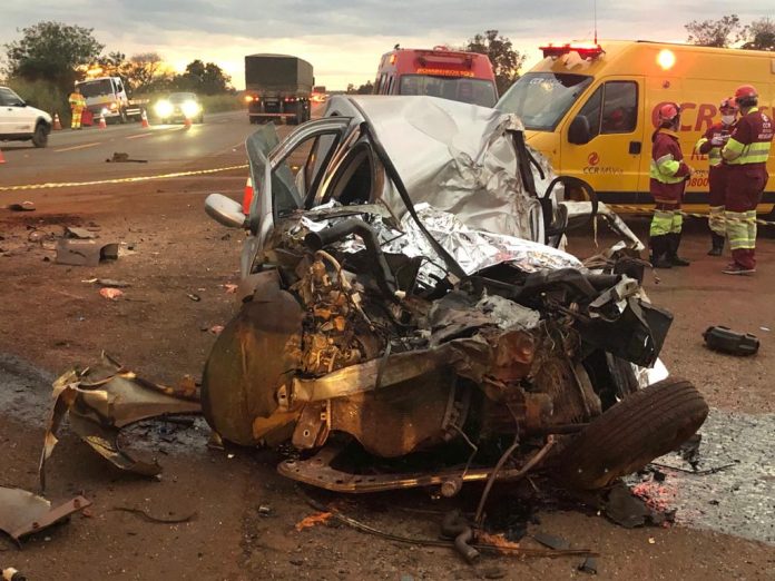 Um casal ainda não identificado morreu na madrugada desta segunda-feira (6) depois que o carro que os dois trafegavam no sentido Nova Alvorada do Sul a Campo Grande bateu em uma carreta canavieira que saiu de uma estrada vicinal e invadiu a BR 163. O acidente aconteceu no trecho entre Nova Alvorada do Sul e Rio Brilhante e o Logan com placas da Capital onde estavam as vítimas ficou totalmente destruído.