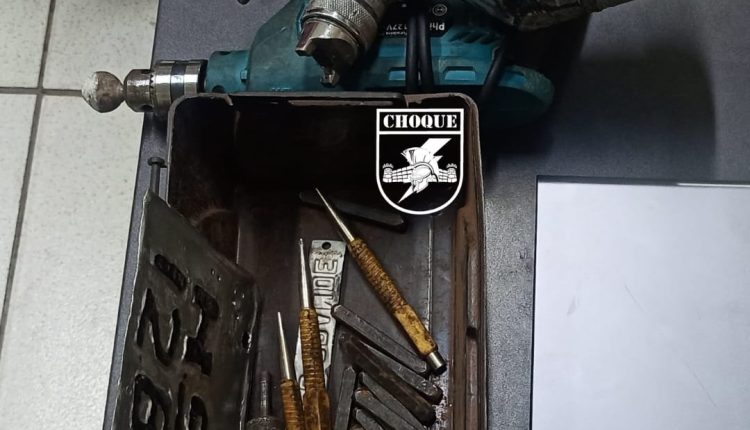Policiais do Batalhão de Choque da Polícia Militar prenderam um indivíduo envolvido em furto de motocicletas e ainda desmontaram esquema criminoso de remarcação de veículos furtados ou roubados em Campo Grande.