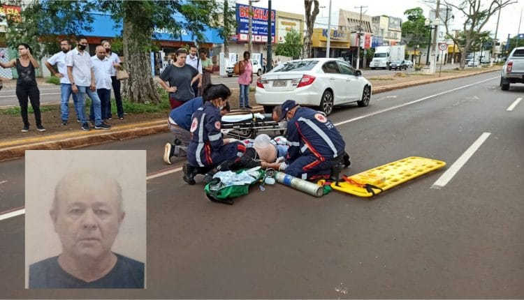 O idoso Aparecido Machado, de 66 anos, morreu no Hospital da Vida, em Dourados, nesta quarta-feira (17), depois de ter sido atropelado por um carro Honda Civic, na avenida Marcelino Pires com a rua João Rosa Góes, região central.