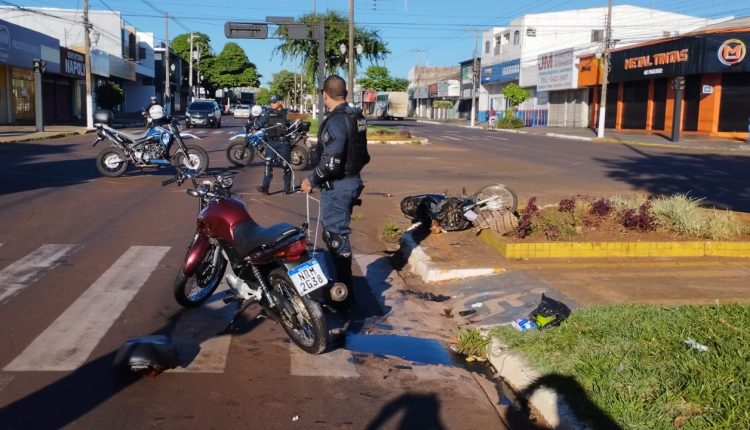Acidente na manhã desta sexta-feira (26/1), envolvendo duas motocicletas, deixou uma mulher gravemente ferida, na Avenida Marcelino Pires com a Rua Aquidauana, em Dourados.