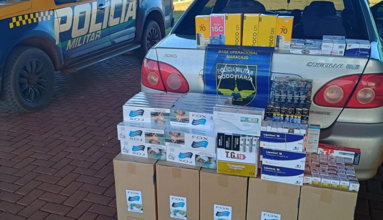 A Polícia Militar Rodoviária (BPMRv) apreendeu, na tarde desta terça-feira (9), uma grande quantidade de cigarros, aparelhos celulares e medicamentos de origem estrangeira transportados de forma irregular na rodovia MS-162, em Maracaju. A ação ocorreu por volta das 16h33, no km 157, durante fiscalização de trânsito e repressão a crimes transfronteiriços.