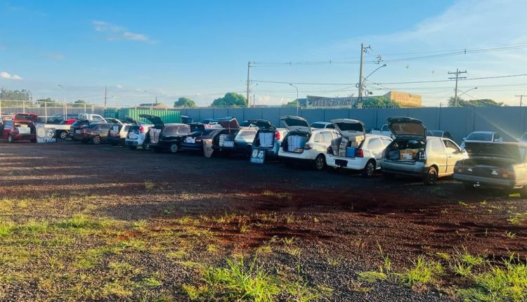 Conforme consta no boletim de ocorrência, foram apreendidos dois carros Fiat Palio, sendo um modelo Wekeend, um VW Space Fox, um GM Monza, dois GM Vectra e três veículos Fiat Uno.