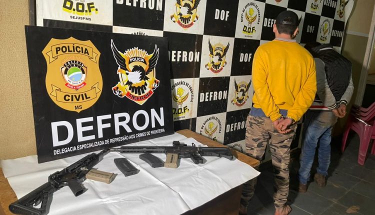 Dois paraguaios identificados como Henrique Duarte Aguaio, de 23 anos, e Henrique Manoel Franco, de 19, ambos moradores no bairro Guarani, em Pedro Juan Caballero (PY), foram presos ontem (28), pela Defron, em Ponta Porã, com fuzis e carro de luxo.