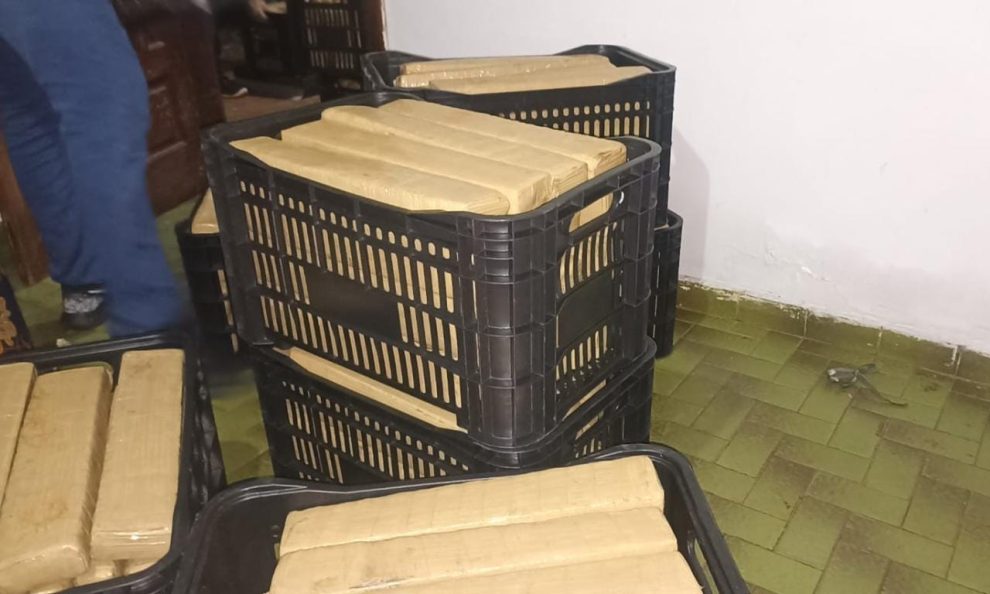 Na segunda-feira (6), durante investigações em bairro residencial, a polícia encontrou 144 tabletes de cocaína, resultando em 150,75 kg e 17 tabletes de pasta base de cocaína, de 17,55 kg.