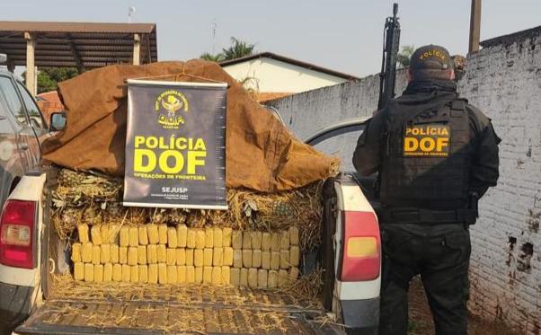 O DOF (Departamento de Operações de Fronteira) apreendeu nesta quinta-feira (8), na MS-379, região de Laguna Carapã, quase 350 quilos de maconha escondidos embaixo de uma carga de abacaxi, transportados numa Saveiro. Um homem de 31 anos foi preso em flagrante.