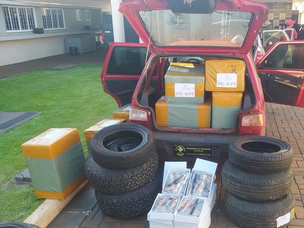 Os militares realizavam bloqueio policial para fiscalização na rodovia MS-380, área rural de Ponta Porã, quando visualizaram o comboio dos veículos. Ao todo foram apreendidos 116 pneus; 1.375 pacotes de cigarros; 63 caixas de relógios e dois triciclos motorizados.