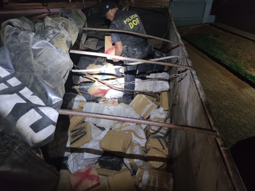 Policiais do Departamento de Fronteira (DOF) estão trazendo para a sede da corporação em Dourados uma carreta apreendida com um grande carregamento de droga. A apreensão aconteceu ontem em uma estrada entre Caarapó e Amambai e o entorpecente estava escondido em meio a uma carga de milho a granel.