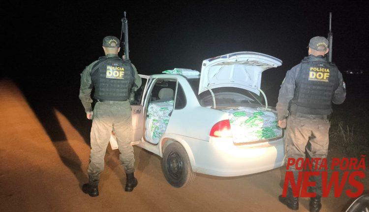 Ainda na área rural de Maracaju, policiais do Departamento de Operações de Fronteira apreenderam um veículo GM Voyage, com 400 caixas de cigarros contrabandeados do Paraguai.