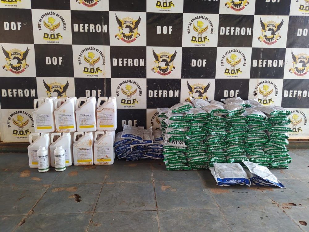 O Departamento de Operações de Fronteira (DOF) apreendeu na manhã de sexta-feira (16), a terceira carga de defensivo agrícola contrabandeada do Paraguai. Num caminhão, foram apreendidos 164 quilos de defensivo em pó, além de 100 litros do mesmo material. A carga está avaliada em mais de um milhão de reais.