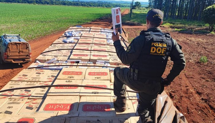 Policiais do DOF (Departamento de Operações de Fronteira) apreenderam uma carga milionária de 40,5 mil pacotes cigarros contrabandeados do Paraguai, no distrito Nova Itamarati, em Ponta Porã, no último sábado (16/3). O material era transportado num caminhão VW 24.250 CNC.
