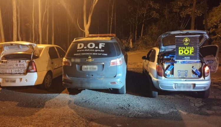 Policiais do Departamento de Operações de Fronteira (DOF) apreenderam, na noite desta terça-feira (11), um veículo Celta prata e um Renault Logan branco, ambos transportando 3.350 pacotes de cigarros contrabandeados do Paraguai.