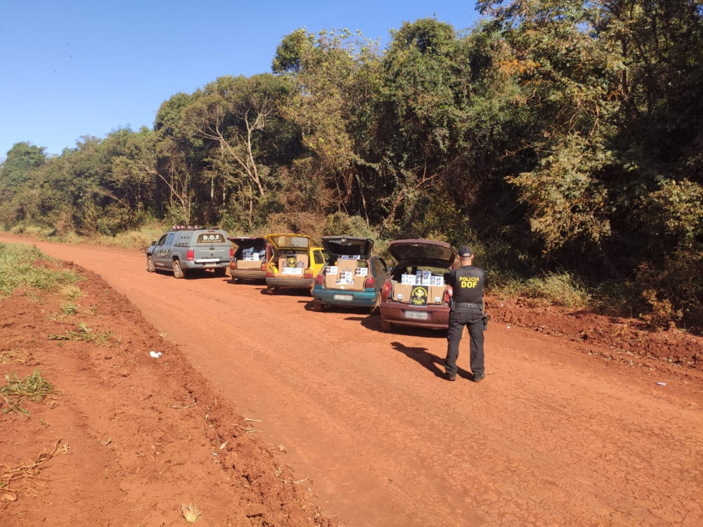 Policiais Militares do Departamento de Operações de Fronteira (DOF) apreenderam, na manhã desta sexta-feira, quatro veículos carregados com 1.595 pacotes de cigarros contrabandeados do Paraguai.