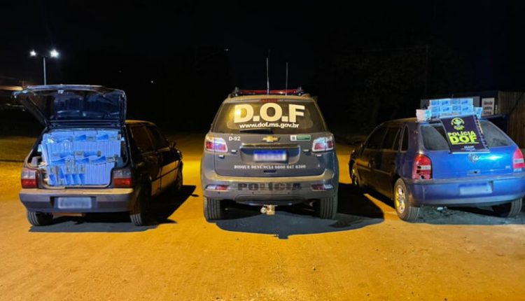 Também no sábado (28), na área urbana de Dourados, dois veículos transportando 2 mil pacotes de cigarros contrabandeados foram apreendidos.